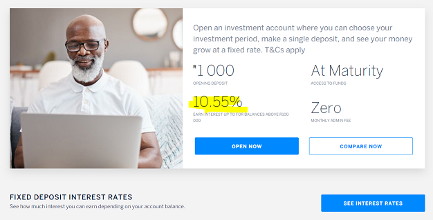 Standard Bank is currently promoting their fixed deposits. “Earn up to 10.55% interest” it says in one of the most widely displayed ads.